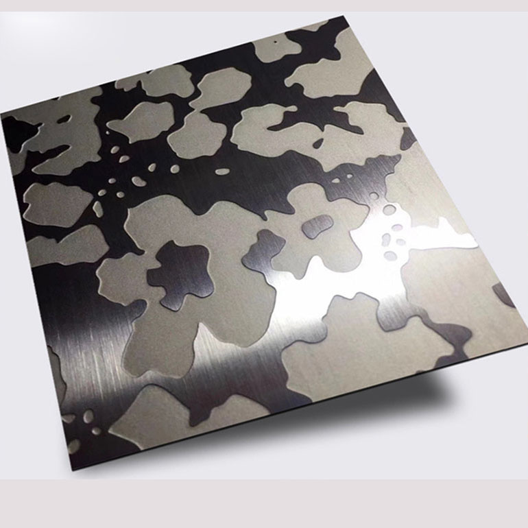 不銹鋼蝕刻板是在不銹鋼表面通過化學的方法,腐蝕出各種花紋圖案。以8K鏡面板、拉絲板、噴砂板為底板,進行蝕刻處理后,對物體表面再進行深加工,不銹鋼蝕刻板可進行局部的和紋,拉絲,嵌金,局部鈦金等各式復雜工藝處理,不銹鋼蝕刻板實現圖案明暗相間,色彩絢麗的效果。